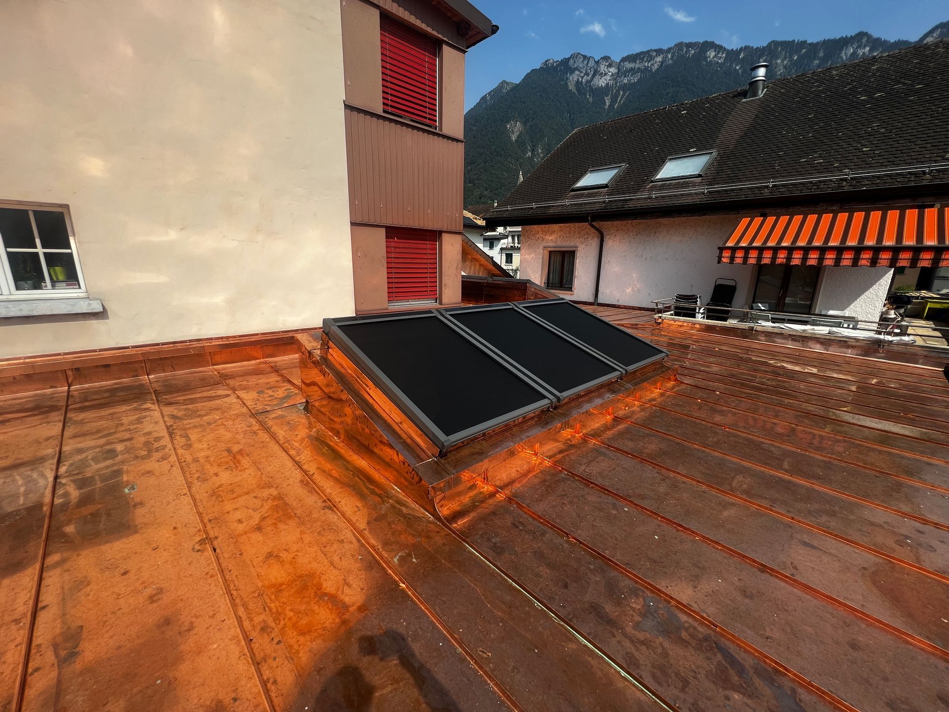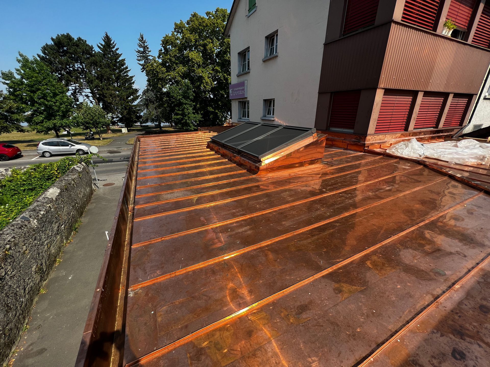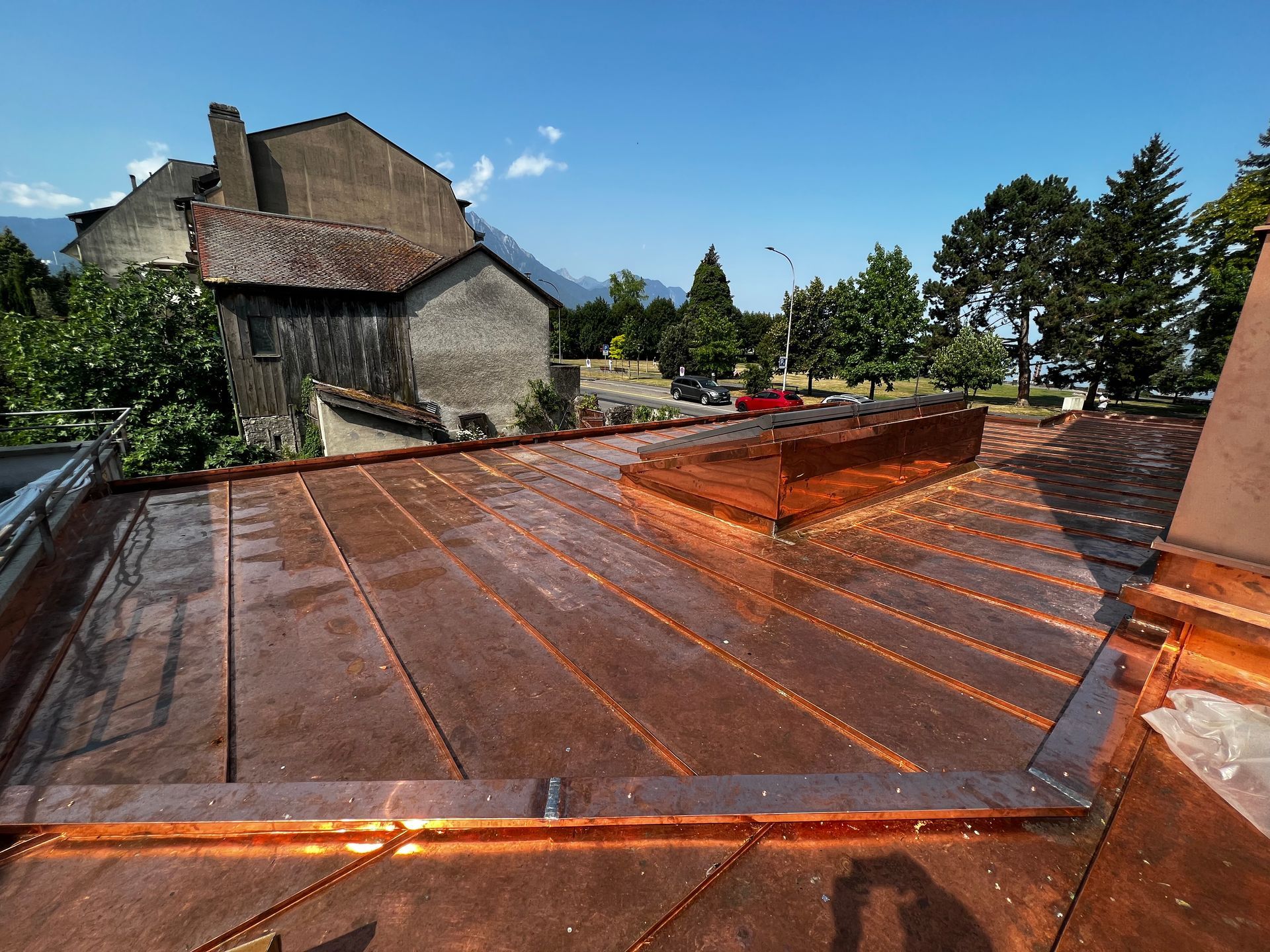 A. Favre Toiture Sarl est un service professionnel de ferblanterie, couverture et étanchéité de Velux basé à Vevey. Nous offrons une gamme complète de services, y compris la réparation et le remplacement, les garnitures, les travaux en cuivre, zinc, inox, uginox et aluminium, les travaux de rénovation ou de pose à neuf de chéneaux, de garnitures de cheminée, de blindage de virevent et de larmiers, de garnitures de ventilation, etc. Notre équipe d'experts est toujours prête à vous offrir des services fiables et efficaces. Nous proposons également une assistance 24/24 pour répondre à vos besoins. Explorez notre galerie et voyez notre expérience de travail étendue.
